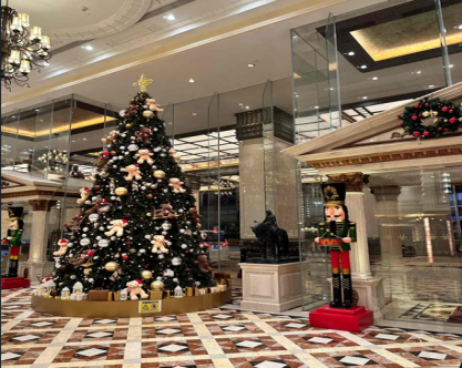 正面入り口には感じの良いドアマンも居て、ツリ-が綺麗でした。