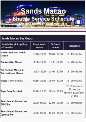 マカオサンズが目の前ですのでカジノバスも利用出来ますし、路線バスのバス停がホテルの目の前にあります。