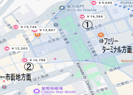 マカオ外港フェリ-ターミナルから徒歩10分以内のホテル