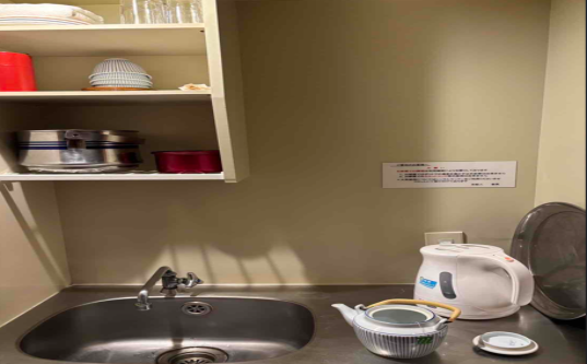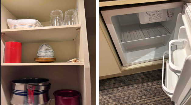 嬉しいことに流し台が有り冷蔵庫・電気ケトルもあるので素泊まりでもコンビニ買い込みで十分と思いました。