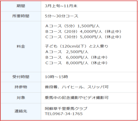 乗馬料金:1,650円~。 JAFカ-ドで10%割引有り