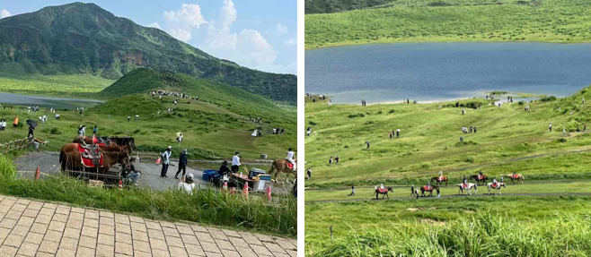 阿蘇山火口に行く途中に車窓から見えましたが、景色が素晴らしくて次回は草千里で乗りたいと思いました🙂